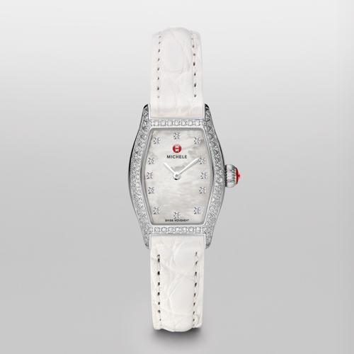 Complimentary Shipping One hundred seventy-nine sparking diamonds detail the uniquely shaped case of this Urban Coquette Diamond Pave The white alligator strap is interchangeable with any 12mm MICHELE strap null Read More..