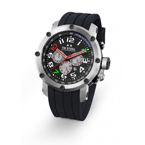 Bargain TW Steel Gents Special Edition Dario Franchitti Stainless Steel Case With Black Silicon Rubber Strap Chronograph Watch Black Dial With Blue Red And Green Detailing.